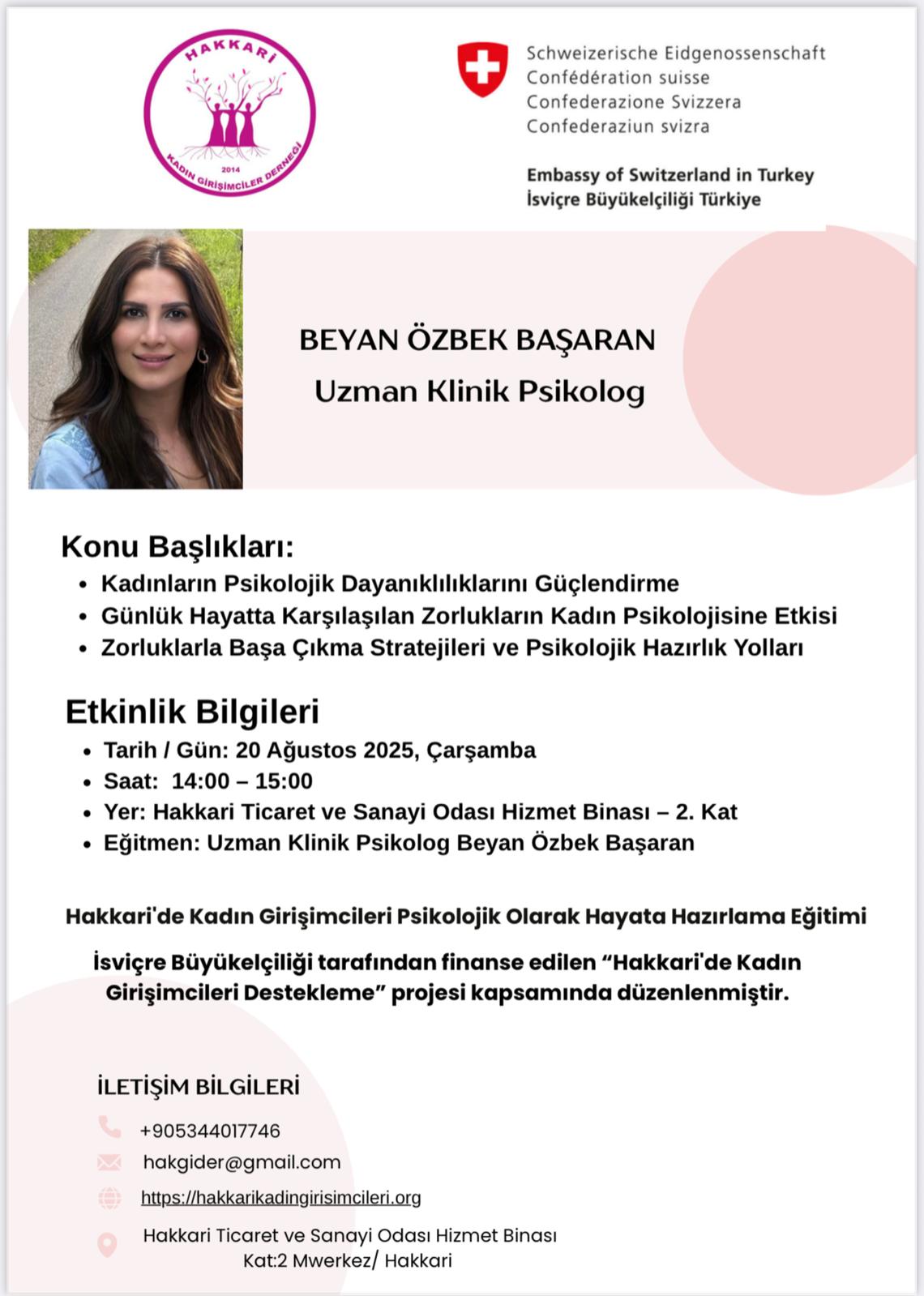 Bu proje Hakkari Kadın Girişimciler Derneği tarafından İsviçre Büyükelçiliği'nin katkılarıyla hayata geçirilmiştir.